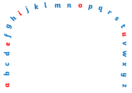 • set of uppercase letters (eg, plastic for foam) • extension: alphabet arc. Strings shown with no commas, e.g., abc.